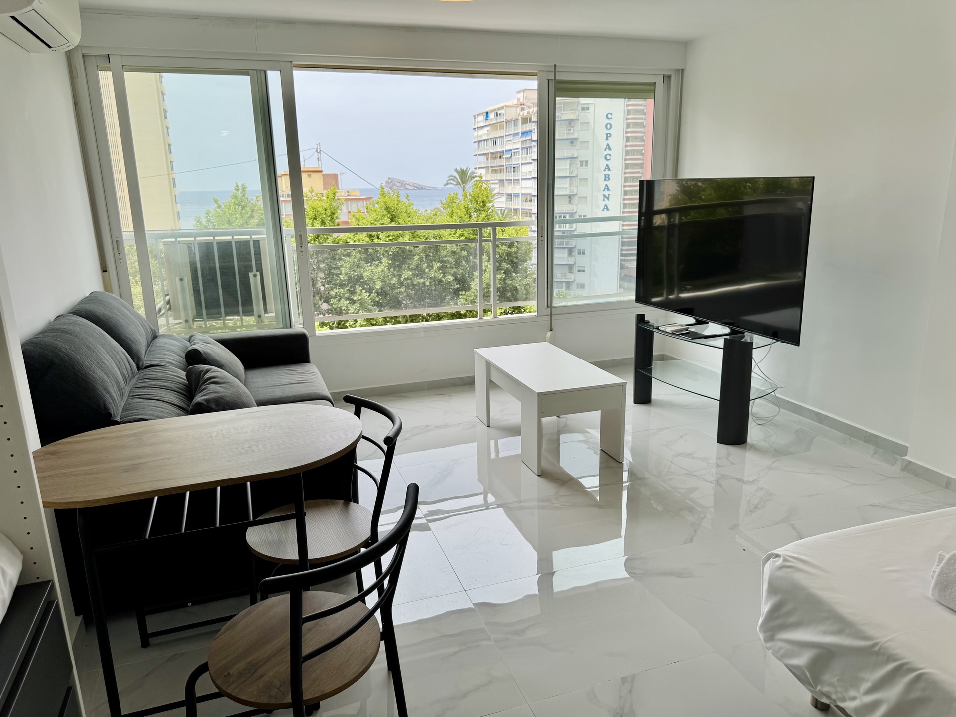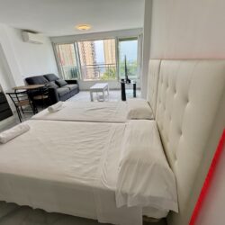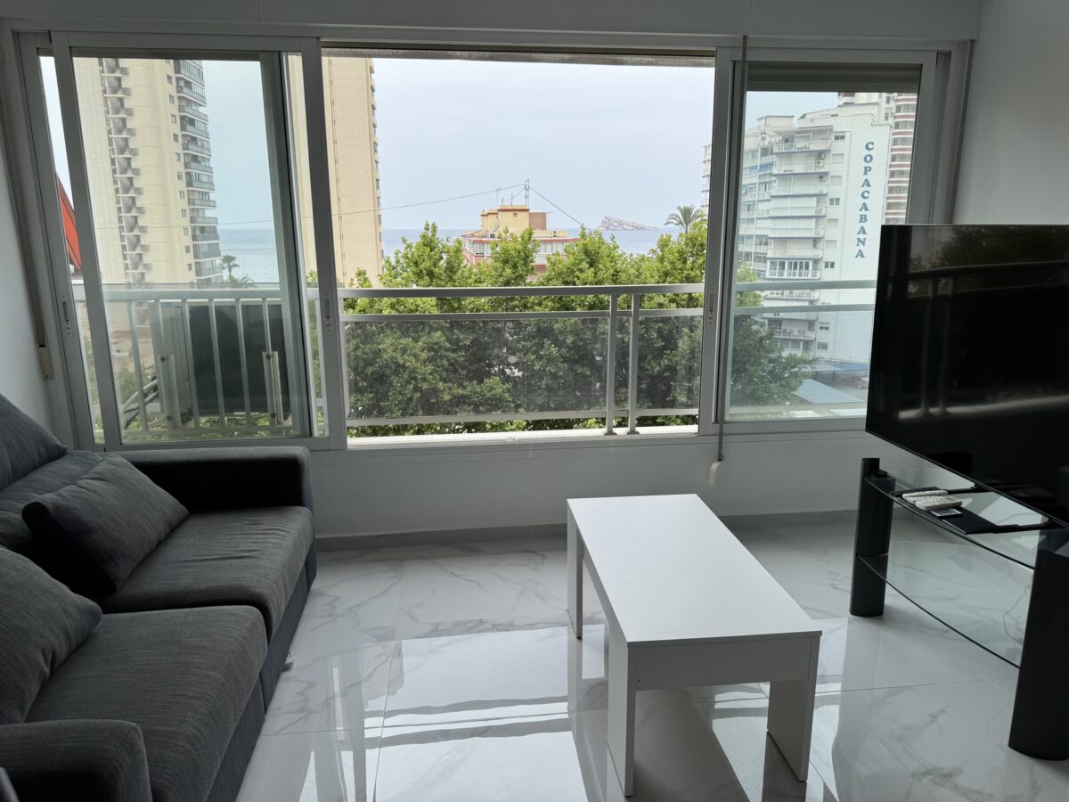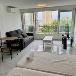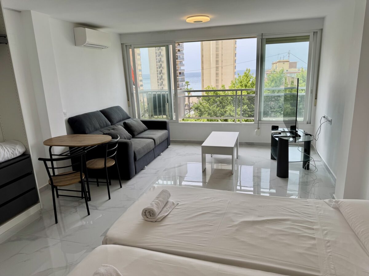 Studio po generalnym remoncie w centrum Benidormu – 5 minut od plaży Levante, częściowy widok na morze, gotowe do zamieszkania